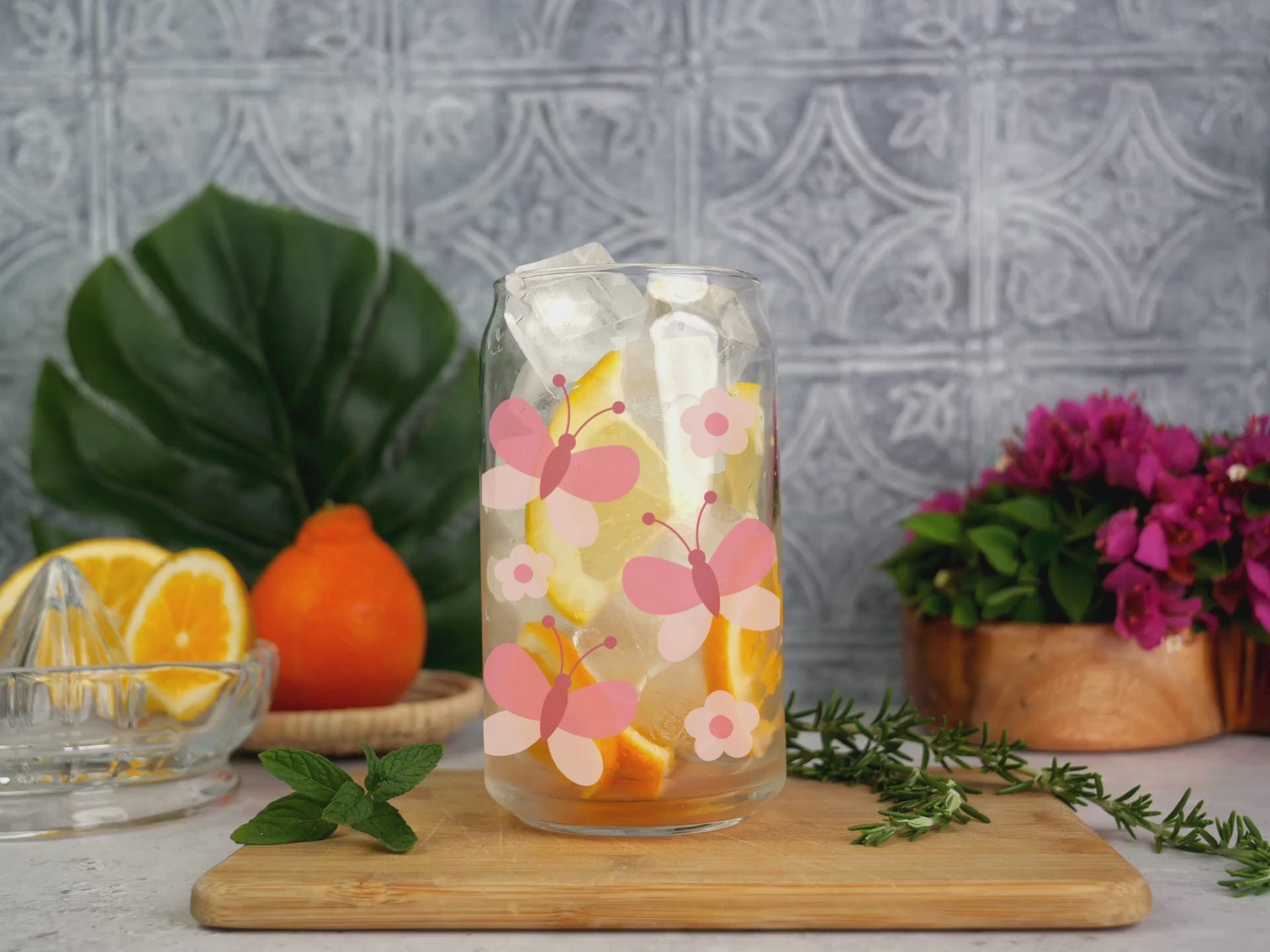 Introducing the Pink Butterfly-Glass Cup, a stunning addition to your drinkware collection. This charming 16oz cup features a beautiful butterfly design and comes with a bamboo lid and glass straw, making it both stylish and functional.
